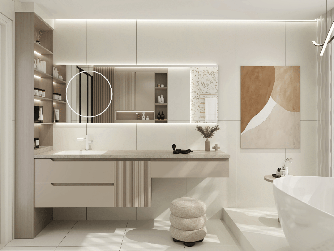 在地產領域,東鵬推出智能衛浴套系、高端巖板套系等,落地住建部“好房子”標準;在醫療領域,研發情緒巖板與抗菌生態板,以A1級防火性能保障公共空間安全;在企業總部、商業連鎖等領域,提供完整的設計與材料解決方案,并已在美的創新科技園、清華大學物理樓、深圳體育中心、曾憲梓紀念館及大梅沙碳中和園區等全國標桿項目中落地實踐,真正實現從綠色產品制造者到城市零碳轉型參與者、推動者的角色升級。