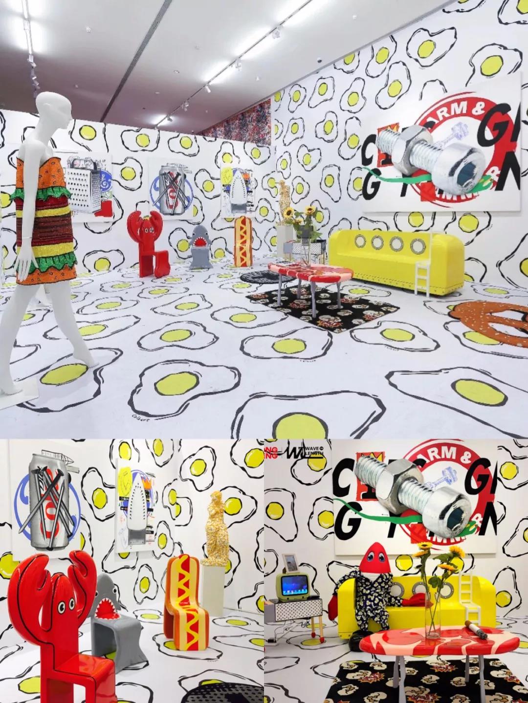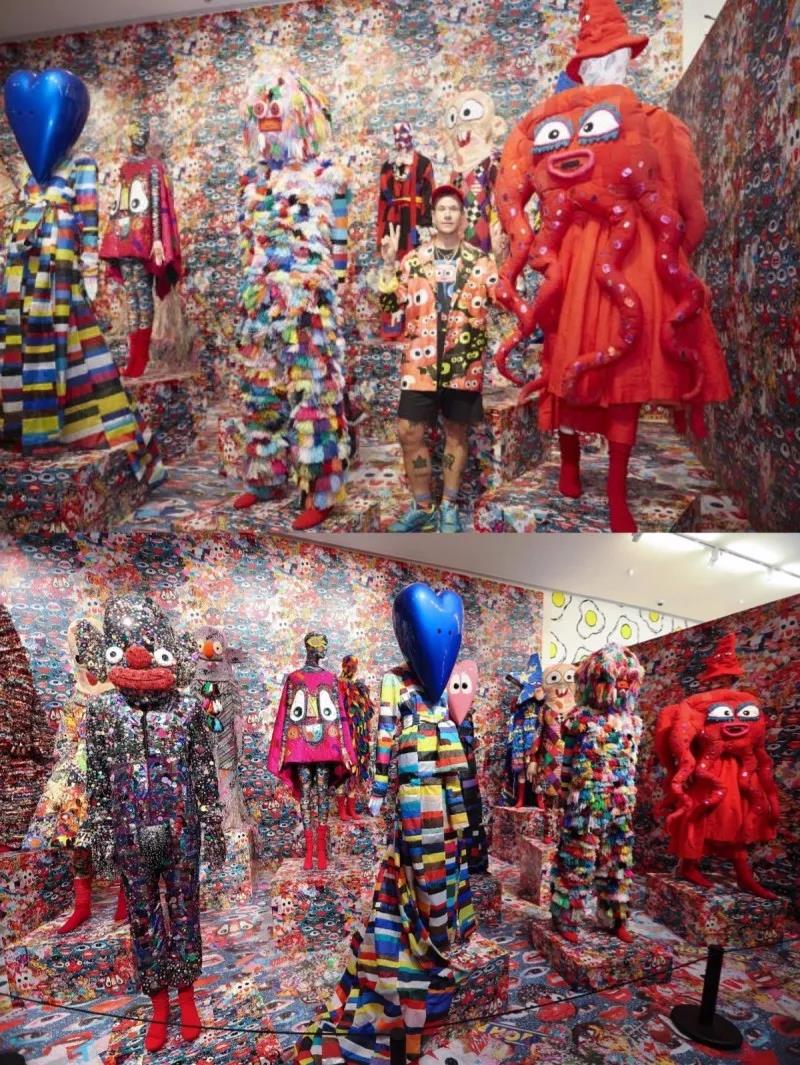 他的展廳名字叫《起居室》,以一系列的作品闡述 “與藝術世界共棲”,除了墻上的畫作,地上的鞋子,還有他的代表性主題西裝,各式家具和可穿戴的藝術品。(真的非常酷~)