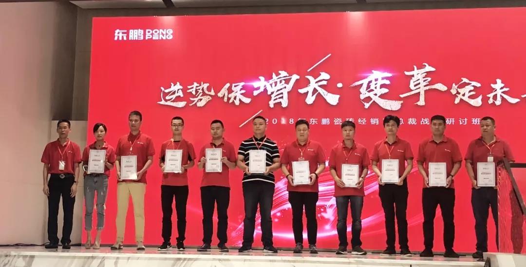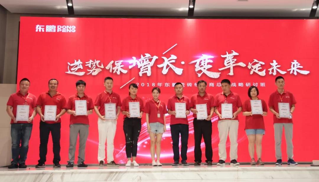 不忘初心,砥礪前行。面對(duì)2018上半年市場(chǎng)巨大的競(jìng)爭(zhēng)壓力下,還有很多的經(jīng)銷商在各方面依然取得了驕人的成績(jī)。本次總裁班研討會(huì)議中特別增設(shè)了表彰環(huán)節(jié),為終端做出非常好的模范榜樣頒獎(jiǎng)。此次共頒發(fā)7個(gè)獎(jiǎng)項(xiàng),共有77位東鵬經(jīng)銷商代表接受嘉獎(jiǎng)。
