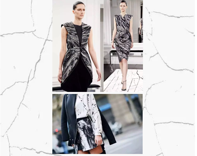 在時尚浪潮的席卷下,大理石紋被廣泛應用于時尚界各種設計之中,并以不同的展現形式全面滲透進了人們的時尚生活。