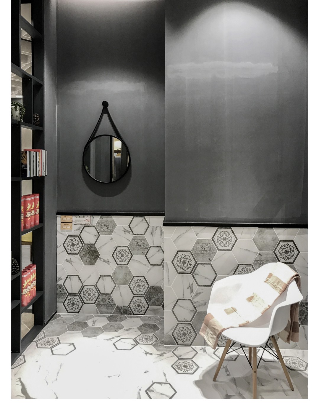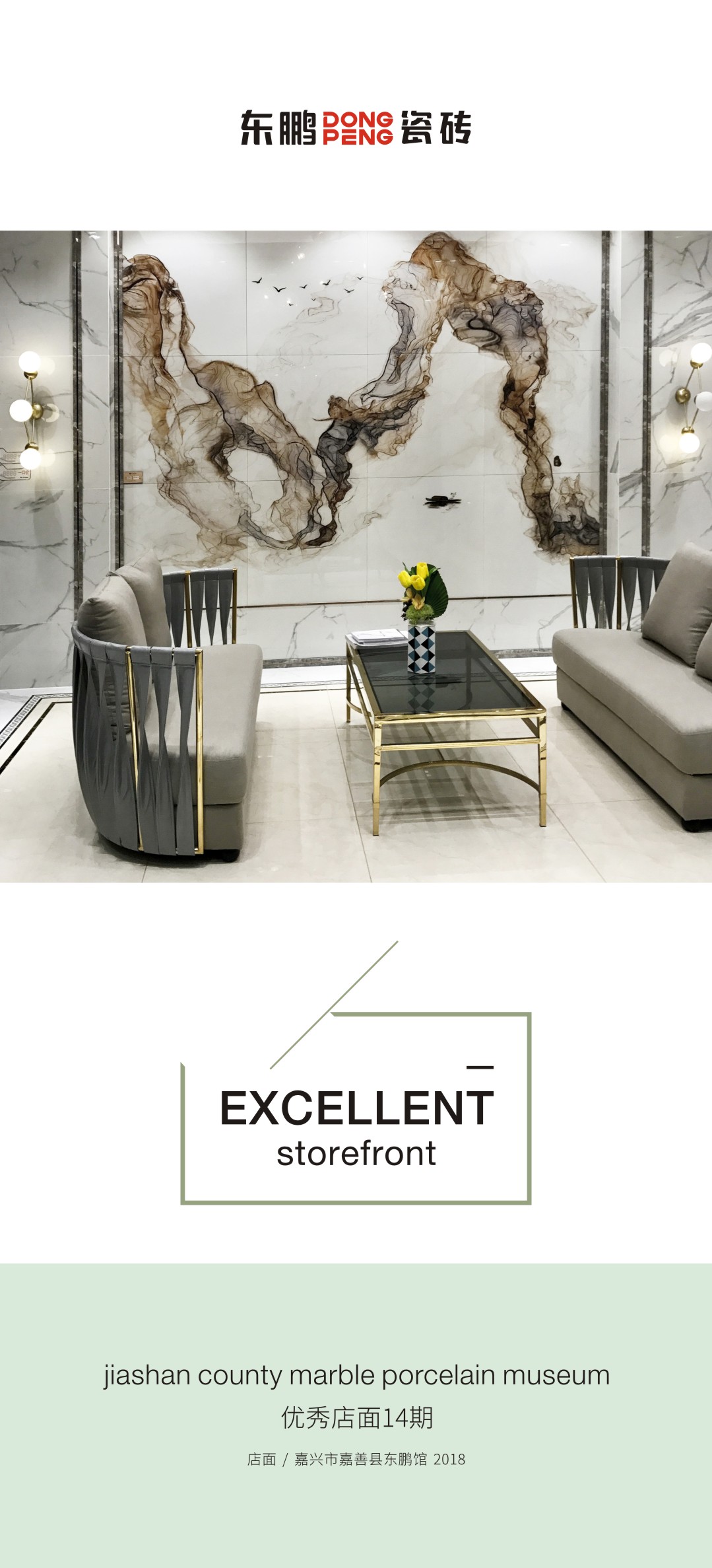 東鵬瓷磚優秀店面第14期之嘉興嘉善東鵬館,擷取江南水鄉的柔美,將灰、白作為空間主色調,簡約明凈。同時在空間中點綴具有跳躍視覺感的金色、藍色、綠色,讓整個空間即素雅又靈動,實現了內斂與活力的自然共存,呈現溫馨安逸的品質空間。