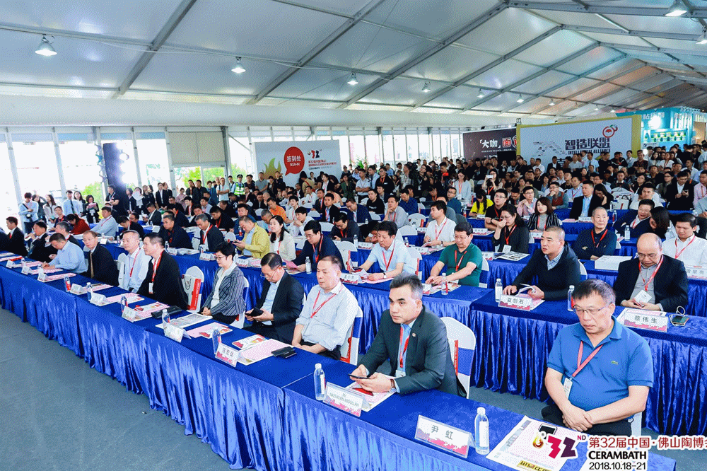 10月18日上午,第32屆中國(佛山)國際陶瓷及衛浴博覽交易會(以下簡稱“佛山陶博會”)開幕儀式在華夏陶瓷博覽城展館隆重舉行,中國建材流通協會會長秦占學、中國建筑衛生陶瓷協會常務副會長繆斌、中國陶瓷工業協會秘書長侯文全、佛山市人民政府副秘書長賴紫寧、佛山市商務局局長蘇巖、佛山禪城區副區長渠錚、中共高安市委書記袁和庚、河北省任丘市人民政府市長宮建軍、山西省垣曲縣縣委書記楊彥康,廣東東鵬控股股份有限公司董事長、佛山中國陶瓷城集團有限公司董事長何新明等領導嘉賓以及來自全球的經銷商、采購商、媒體朋友共同出席見證第32屆中國·佛山陶博會的盛大開幕!