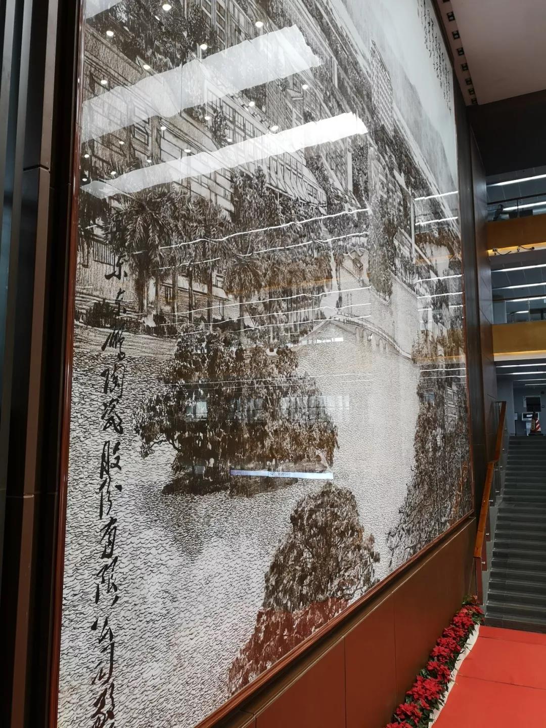 壁畫高 12 米、寬 12 米,由209塊大型瓷磚拼接而成,如此規格的巨幅壁畫,在業內罕見的同時也對其工藝制作要求極高。如何在保證畫面精度清晰細膩的同時,兼顧到壁畫的持久耐用不變色,以及后期的鋪貼施工問題,可以說這在整個業界都是一個嚴肅的挑戰。東鵬輔材管理中心的設計和技術團隊通過攻克重重難題,最終成品非常出色的完成并展現出來,也得到校方的高度認可,也讓我們再一次見證了東鵬力量!