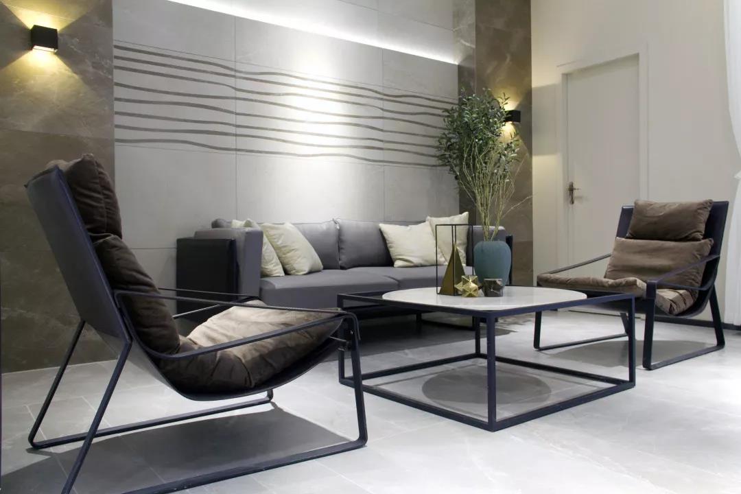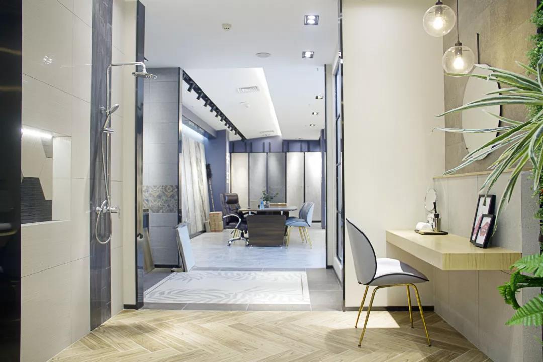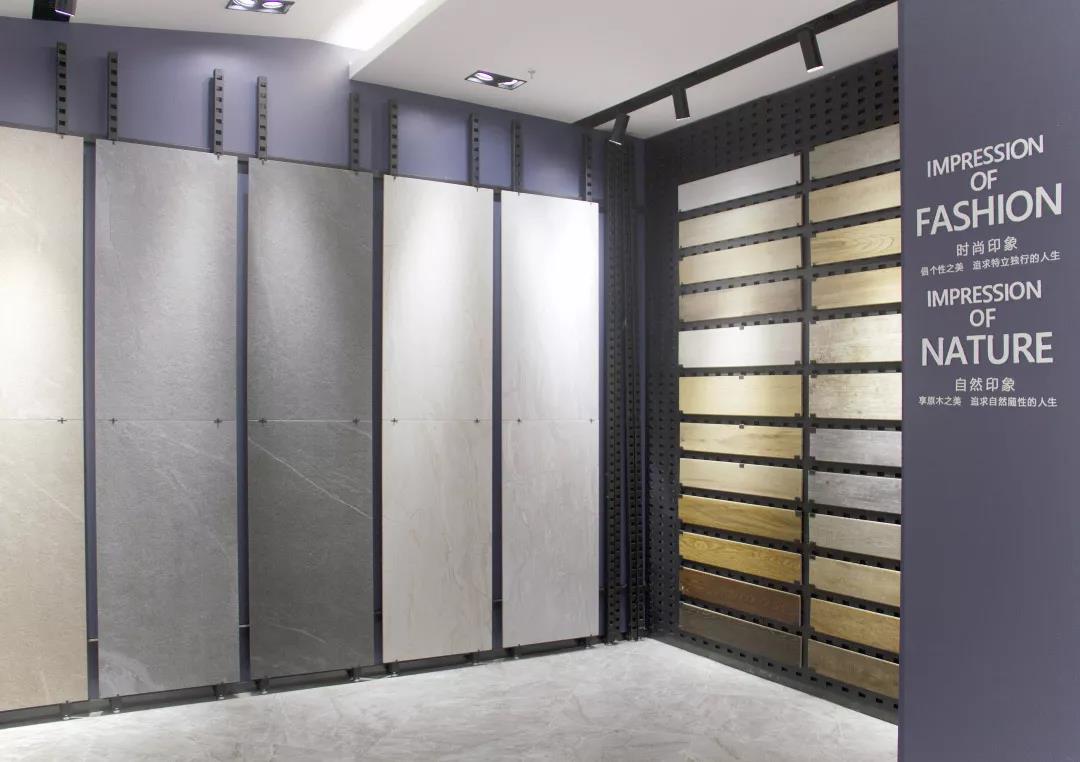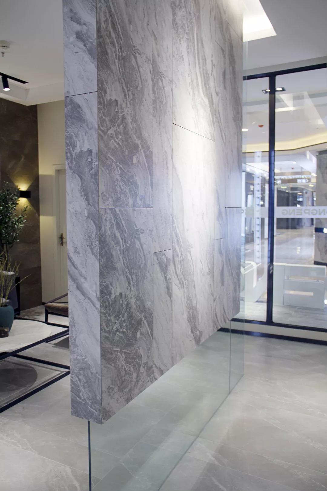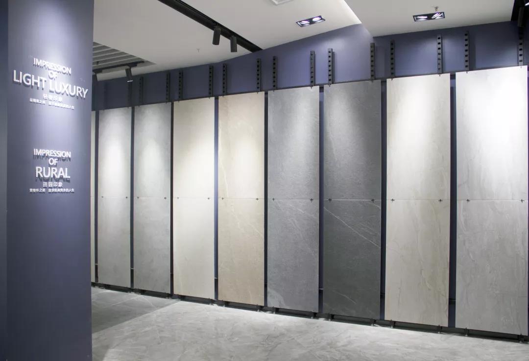 選材區按照產品的色系、規格、類型分類,直觀的展示產品;在燈光的渲染下,瓷磚的獨特之美悄無聲息地展現。