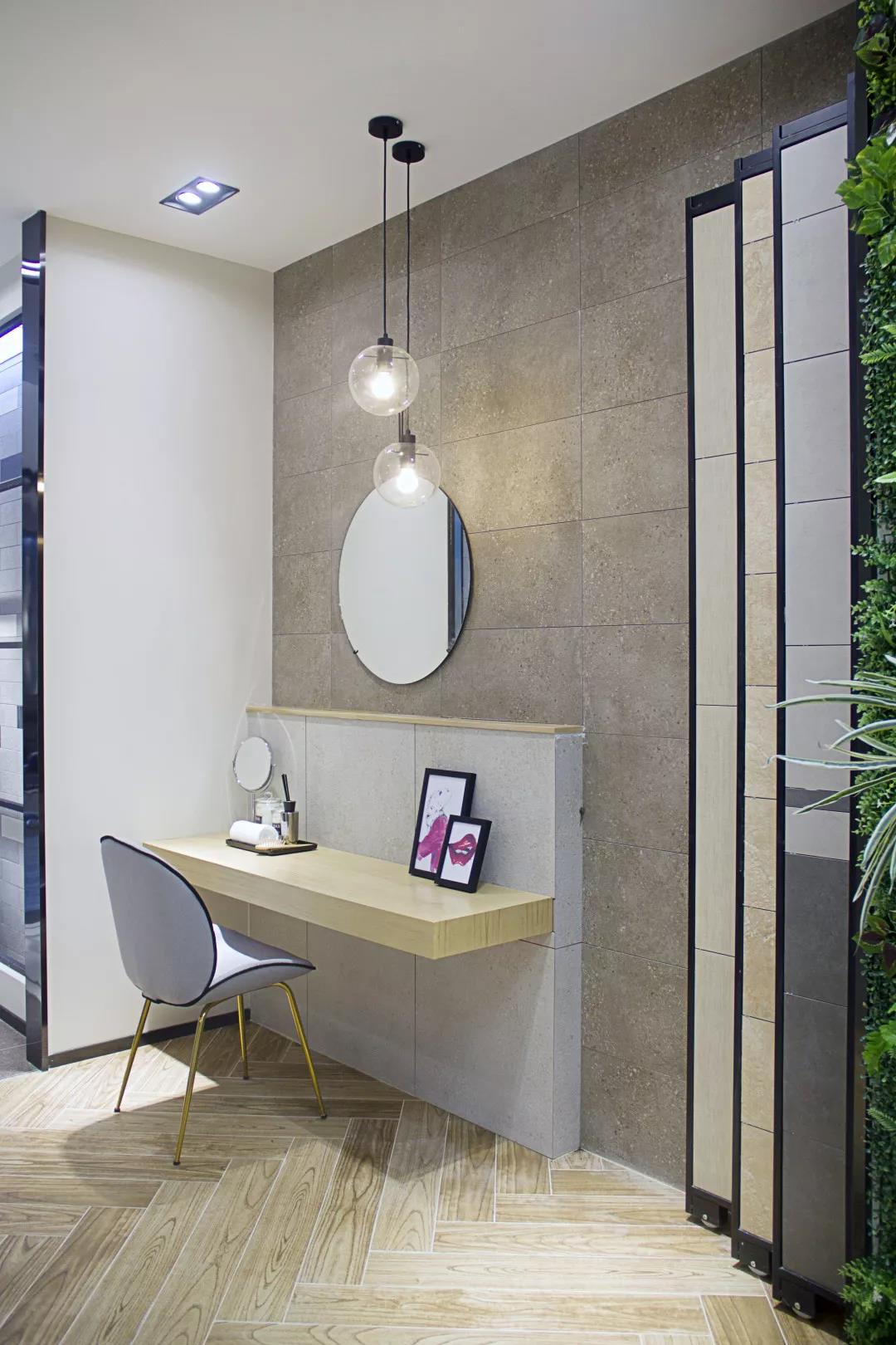 平面布局上優化了各區域的行走路線,使用功能也更趨合理。墻地各式瓷磚的加工與搭配,表達了每個空間的設計語言,將瓷磚的應用多元化。