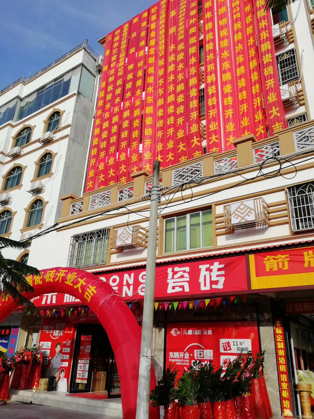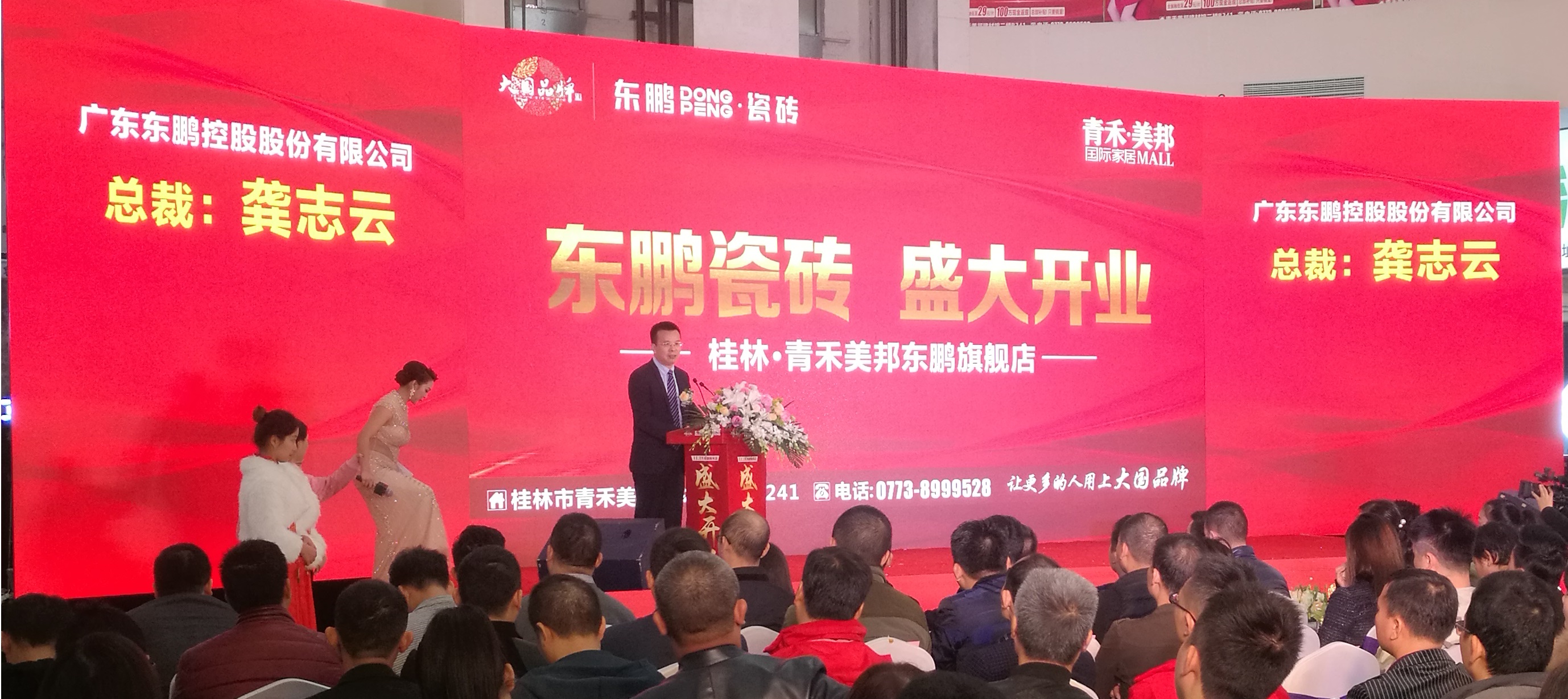 東鵬桂林青禾旗艦店通過17天線下布局,在當?shù)嘏e辦“東鵬瓷磚 盛大開業(yè)——總裁親臨 現(xiàn)場放價”活動。桂林市人大代表、湖南商會常務副會長桂林春天投資有限公司董事長萬富春,桂林市銀盛行擔保有限公司董事長肖連生,桂林市青禾美邦國際家居MALL總經(jīng)理項揚、總經(jīng)理蒙春穎,廣西聯(lián)壹金融董事長石前鵬,三禾創(chuàng)始人秦飛,大閱兵建博會會長周昭明,東鵬控股總裁龔志云,西南大區(qū)總經(jīng)理查永根,廣西子公司總經(jīng)理何偉銳,東鵬瓷磚廣西商會會長李軍,東鵬瓷磚桂林總代理、桂林市泉匯建材貿易有限公司總經(jīng)理蔡愛峰,以及五十多位經(jīng)銷商、三十多家聯(lián)盟商家、二十多家當?shù)匮b飾公司領導、東鵬新老客戶出席開業(yè)盛典。