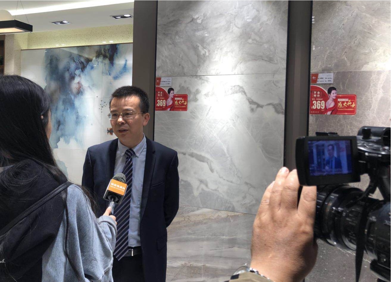▲東鵬控股總裁龔志云在青禾旗艦店接受桂林電視臺專訪