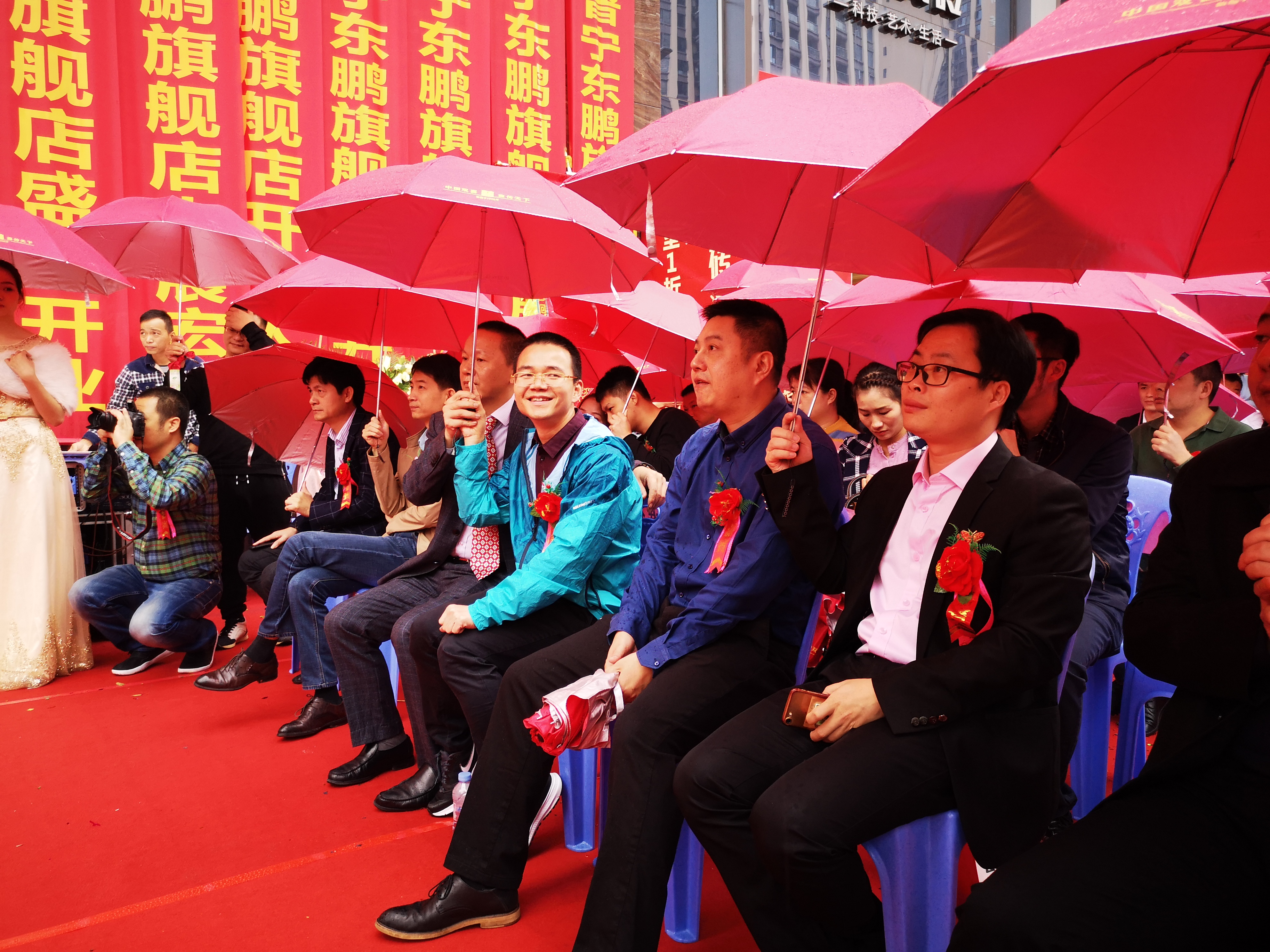 唐山市東鵬總經(jīng)理樊哲,渠道經(jīng)理王海濤、田愛專、李鑫,當(dāng)?shù)馗鹘ú钠放曝?fù)責(zé)人、裝飾設(shè)計(jì)公司代表出席旗艦店開業(yè)慶典。