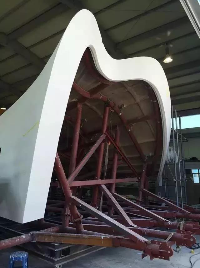 漂亮的外墻造型是先經過工廠放樣、預制,然后在現場拼裝完成。