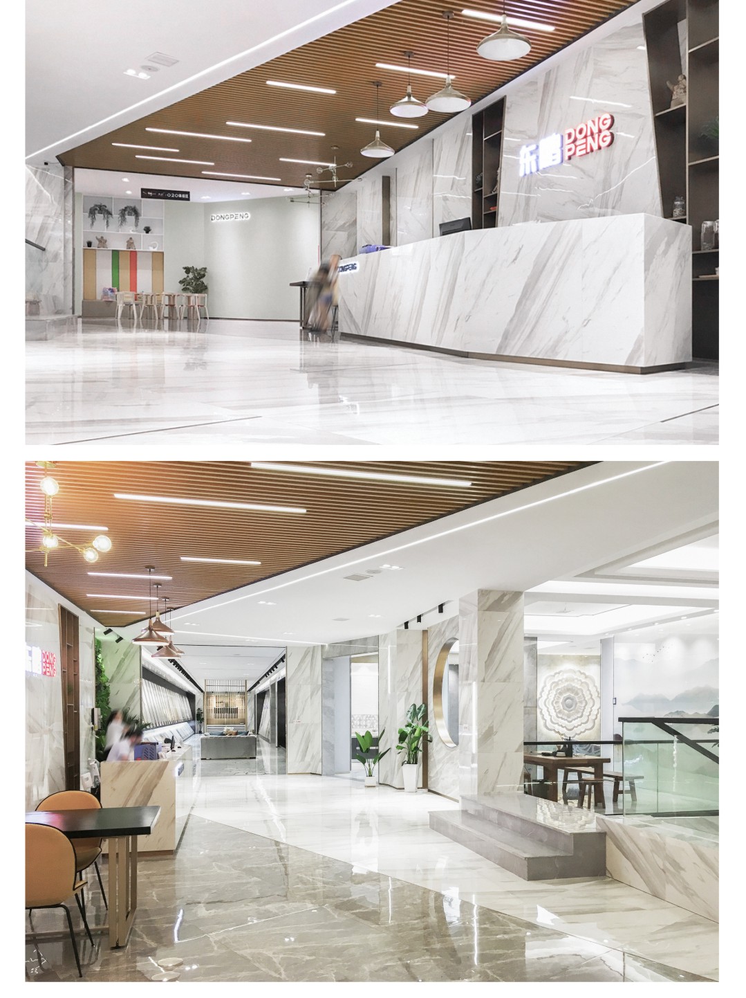 東鵬瓷磚第20期優(yōu)秀店面湖南懷化旗艦店,汲取當(dāng)?shù)氐娘L(fēng)景名勝與民俗傳統(tǒng),懷和柔化,運(yùn)用中式園林通透、借景等手法,在一息一動(dòng)間寫意現(xiàn)代時(shí)尚的生活,創(chuàng)造滋養(yǎng)情懷的“心安”空間。