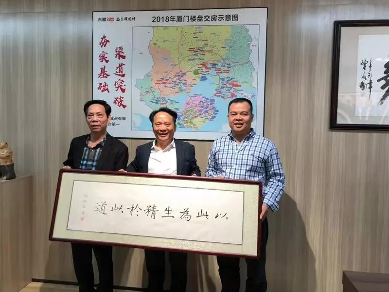 ?(從左至右)石獅東鵬董事長洪三躍、東鵬控股董事長何新明、石獅東鵬總裁肖文藝合影