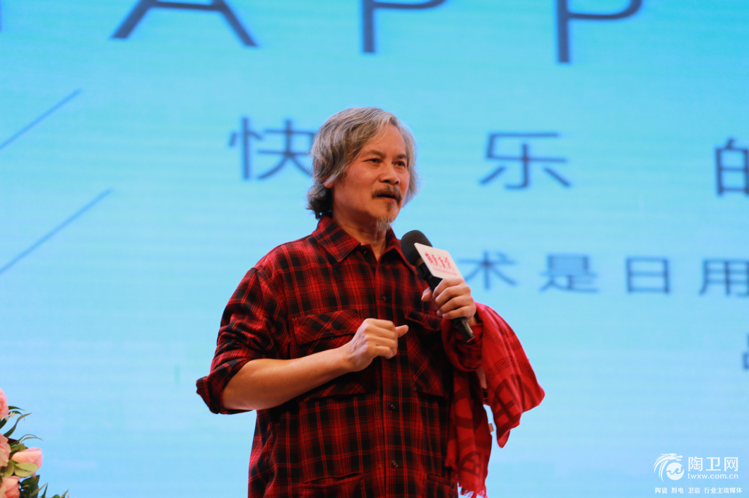 中國家裝教父、廣東省家居建材商會榮譽會長、米蘭國際HOAA藝術設計集團、星藝、華潯、名匠裝飾集團創始人余靜贛發表了“快樂的藝術”為主題的演講。余工認為比整裝更先進的是協同整裝,他圍繞著藝術裝飾準備了十五年,希望陶瓷行業與藝術家們能協同起來,把瓷磚與藝術相結合,做出更高的價值。這個價值不僅對廠家有利,而且消費者也會從中受益。