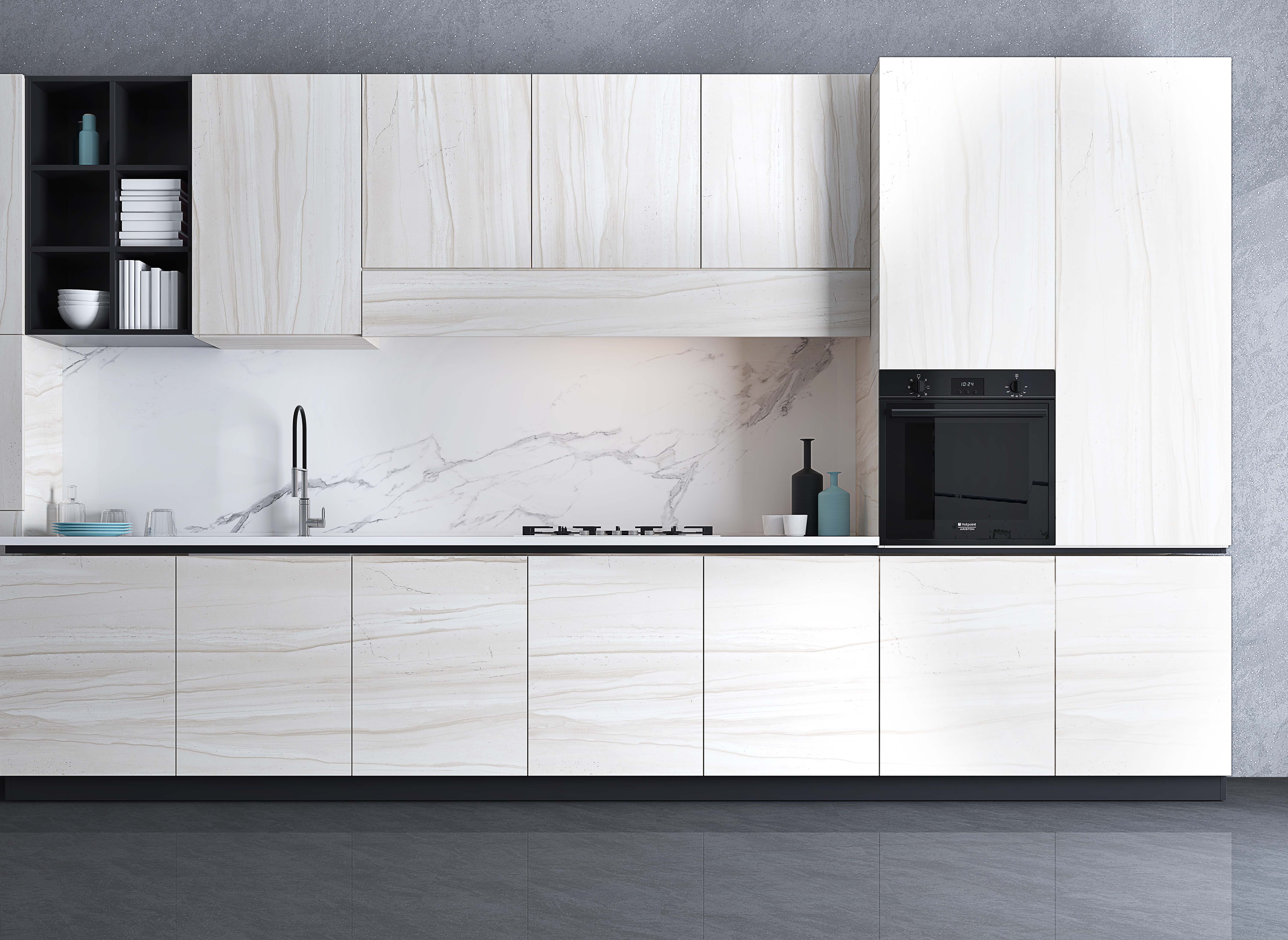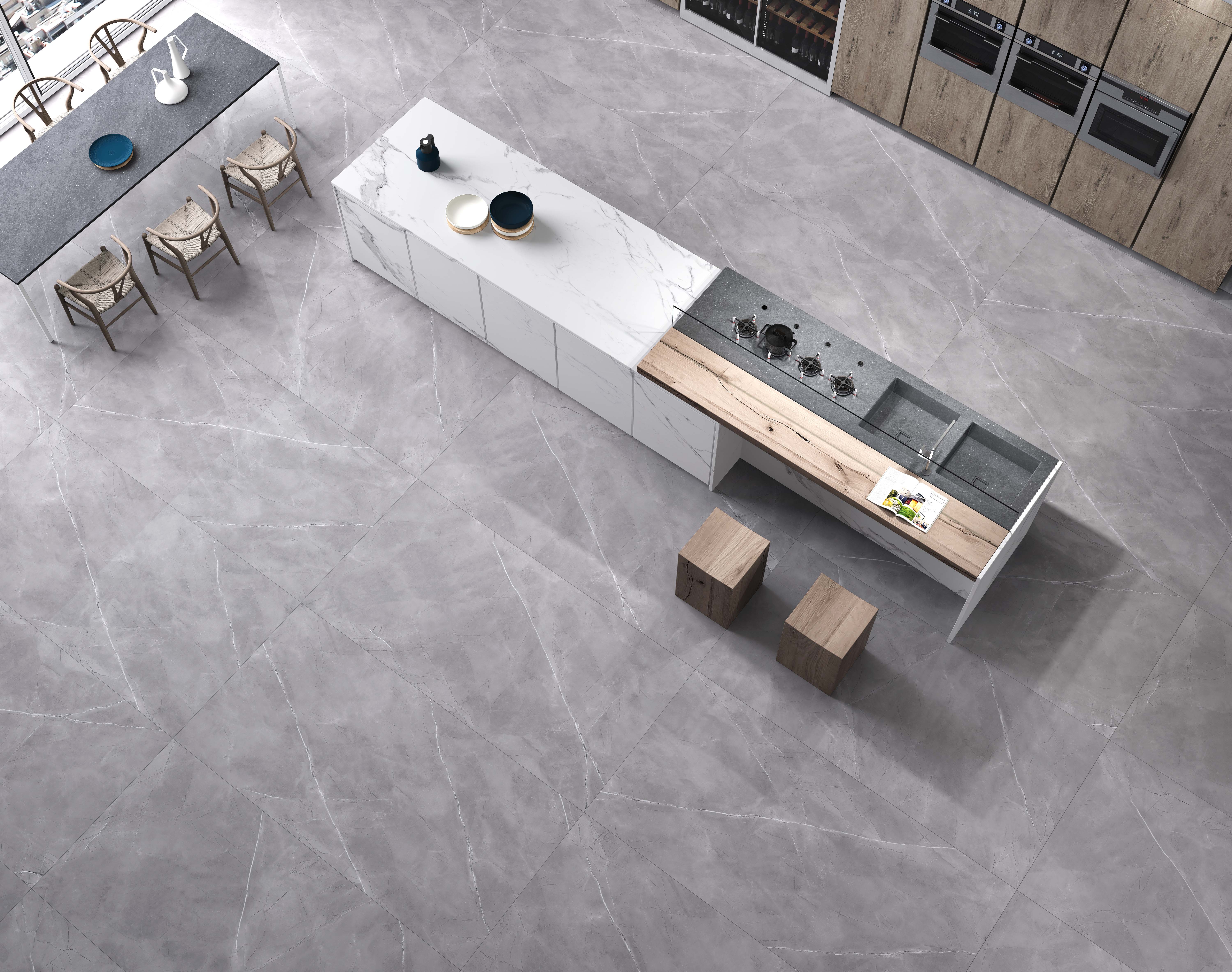 延續大尺寸的高端格調,盡顯自然紋理的石材之美,保證視覺流暢度,提升空間整體感,讓小空間也擁有輕奢氣質,不顯雜亂。