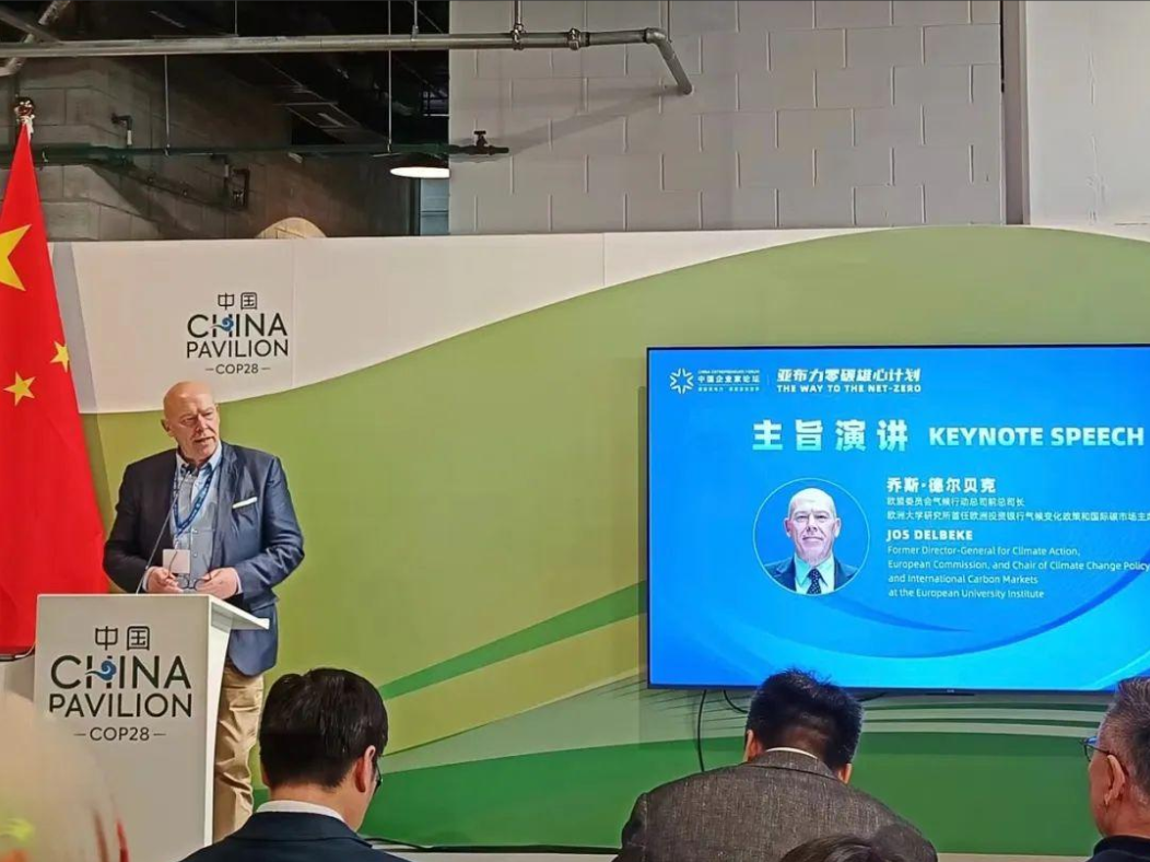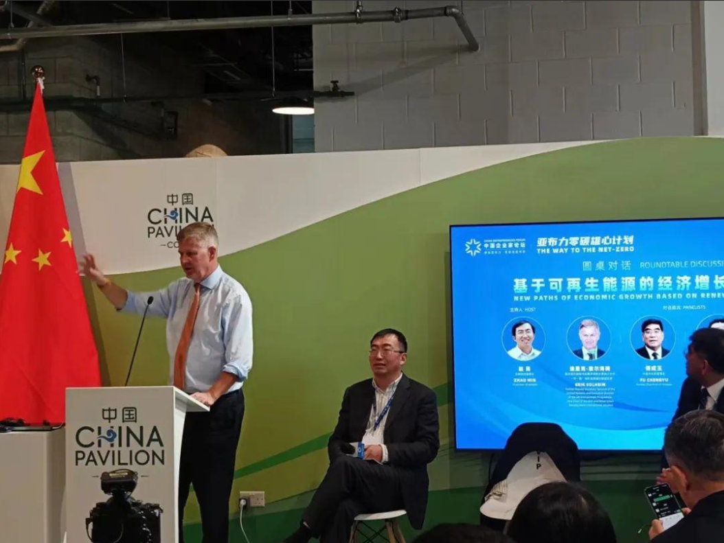 12月9日,由亞布力中國企業家論壇、能源基金會、全球能源互聯網發展合作組織、國際綠色經濟協會、中科創星聯合主辦的“可再生能源與人類經濟增長新范式”主題邊會在COP28藍區·中國角邊會一區舉行,中國生態環境部副部長趙英民,亞布力中國企業家論壇理事長、泰康保險集團創始人董事長陳東升,萬科集團創始人兼董事會名譽主席、萬科公益基金會理事長王石出席會議致辭,歐盟委員會氣候行動總司前總司長、歐洲大學研究所首任歐洲投資銀行氣候變化政策和國際碳市場主席喬斯·德爾貝克,能源轉型委員會主席、英國氣候變化委員會前主席阿代爾·特納,聯合國前副秘書長兼環境規劃署執行主任、“一帶一路”綠色發展國際聯盟主席埃里克·索爾海姆,國際綠色經濟協會執行會長鄧繼海,東鵬控股副董事長、總裁何穎等中外產學研界代表近百人與會。