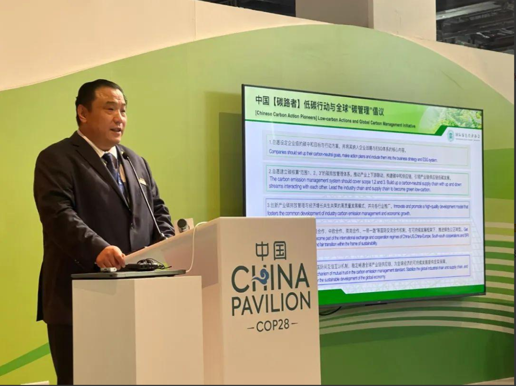 大會期間,中國政府機構、研究機構、產業協會、企業以及非政府組織等組織機構等齊聚COP28中國角,圍繞中國應對氣候變化政策行動、應對氣候變化國際合作、綠色低碳發展、等內容舉辦100余場邊會活動,旨在分享中國綠色低碳轉型創新的最佳實踐,共同推動應對氣候變化國際合作。作為綠色發展與“雙碳”事業的產學研聯合平臺,國際綠色經濟協會發起中國“碳路者”產業行動,聯合以“碳中和”目標為發展道路、全方位實踐低碳發展的行動者,致力于向國際社會展現中國企業應對全球氣候變化的雄心、行動與觀點。