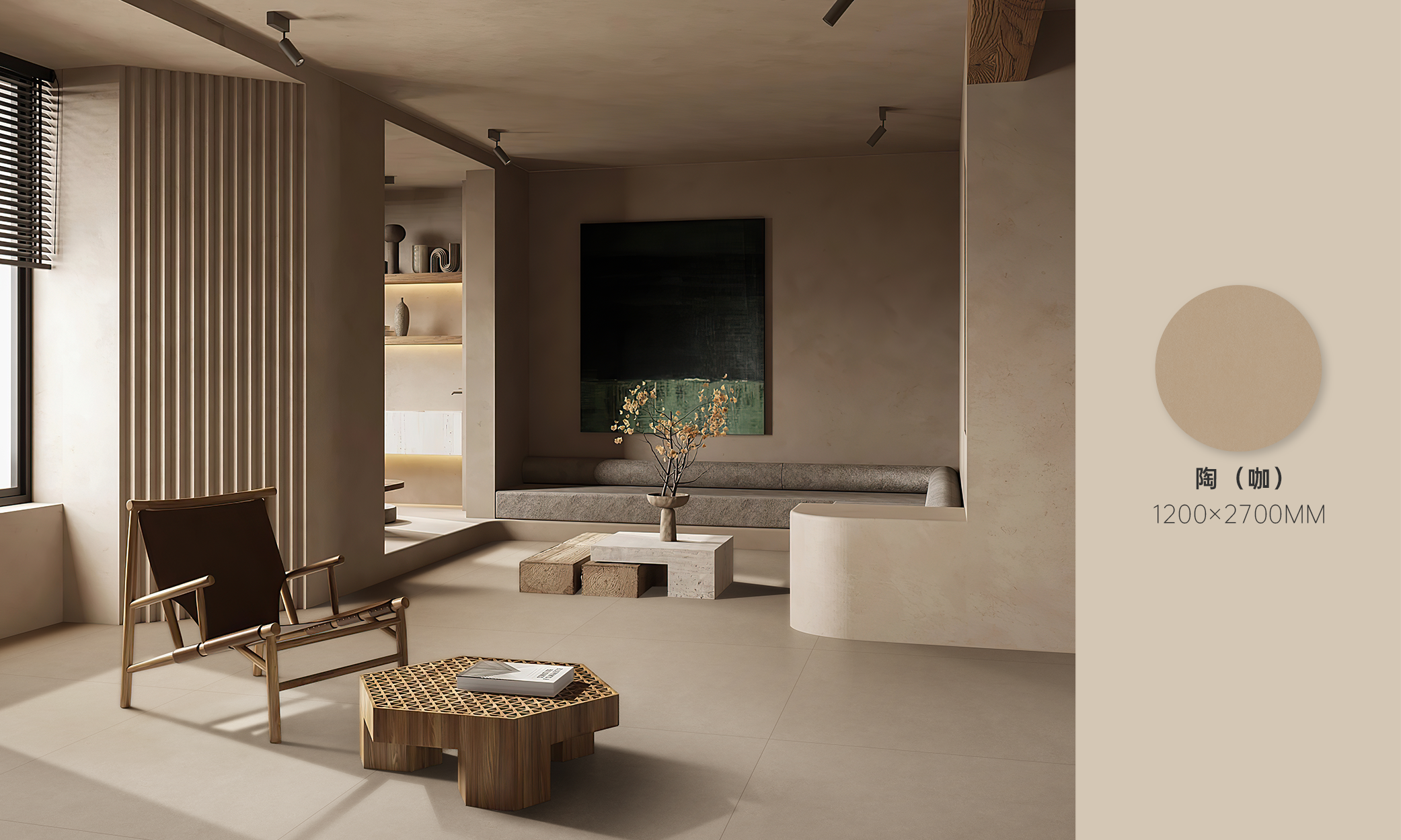 東鵬洞察2024年流行色彩趨勢,以趨勢中的陶土色為靈感創造了大地系列,甄選陶(白)、陶(米)、陶(咖)、陶(棕)、陶(赤)低飽和的大地色系,與奶油風風格色系相契合。柔和的中性色調,巧妙地化解了瓷磚的冷淡與堅硬,為消費者帶來更舒適自然的居住氛圍。