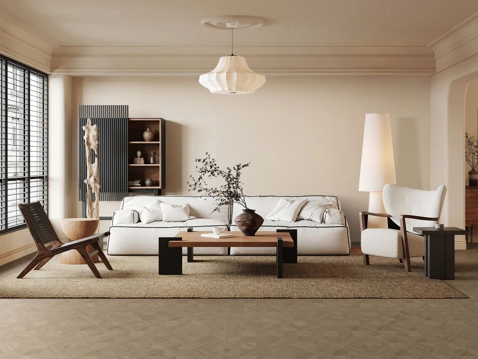 中古奶油風從赤土系美學和原始自然中獲得靈感,將復古濃郁的赤土系咖色、棕色作為空間關鍵色,充分利用天然色調傳遞空間舒適治愈感。通過第三代數碼模具技術,釉面實現0.1mm級的微粒體感,還原陶土的自然有機質感,塑造個性化的高級質感奶油家。質樸的赤土色調給予人一種真實、溫暖、滋養的空間情緒,復古元素通過現代再設計,彰顯居者低調奢華、復古懷舊、經典高級的品味與生活態度。