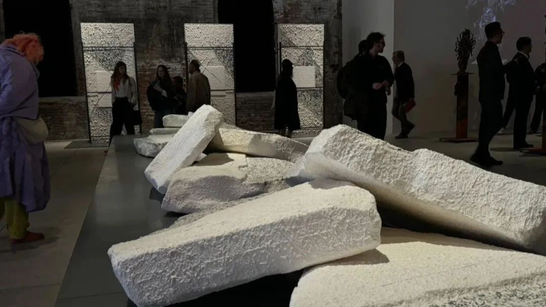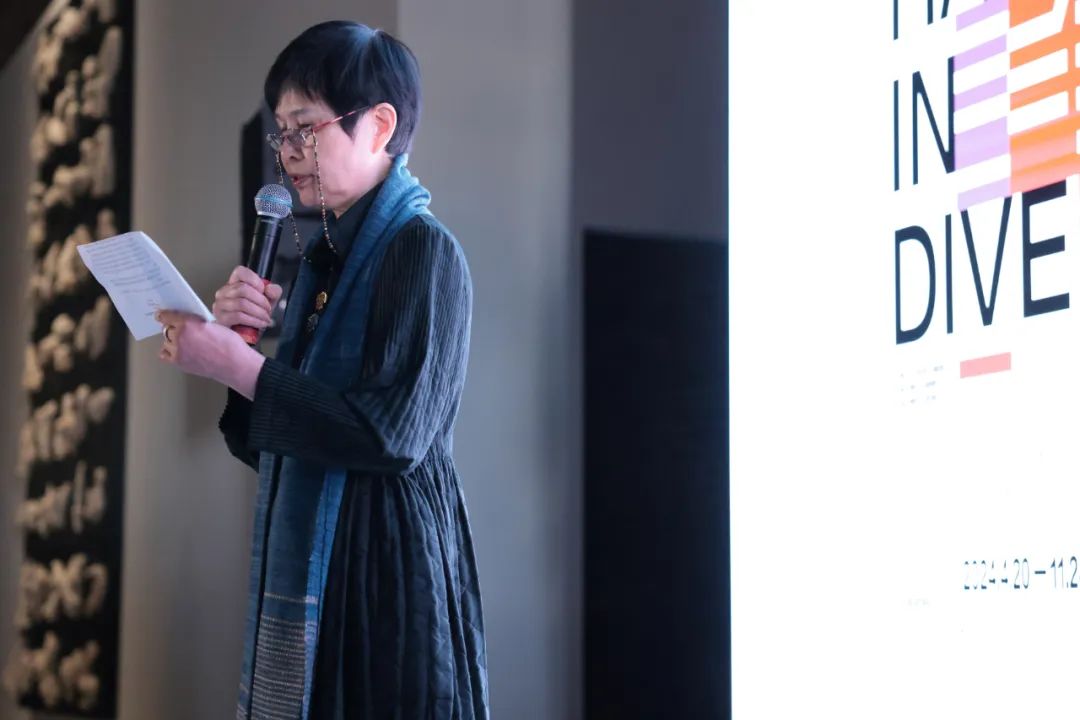 △ 中國美術(shù)學(xué)院教授、博士生導(dǎo)師施慧作為第60屆威尼斯雙年展參展的中國藝術(shù)家代表致辭,并攜《書非書》系列作品亮相雙年展,通過對材料文化性及生命體察的持續(xù)關(guān)注,演繹中國書法的意韻,編織東方精神文脈。