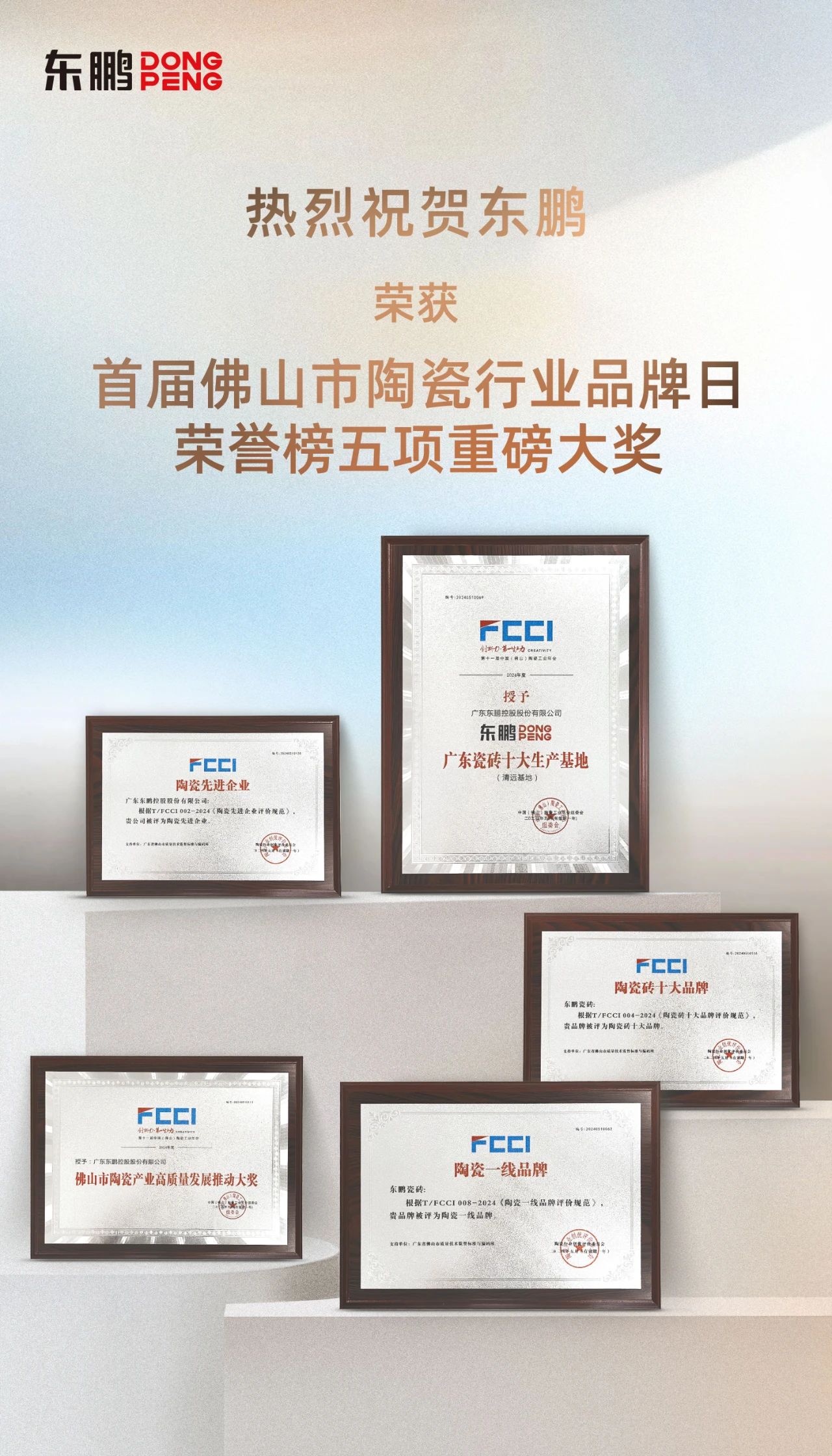 2024首屆佛山市陶瓷行業(yè)品牌日榮譽(yù)榜發(fā)布,不僅是對(duì)佛山市陶瓷行業(yè)品牌發(fā)展成果的集中展示,更是對(duì)行業(yè)內(nèi)優(yōu)秀企業(yè)的鼓勵(lì)和肯定;旨在表彰那些在品牌建設(shè)、技術(shù)創(chuàng)新、市場(chǎng)拓展等方面取得顯著成績(jī)的企業(yè),為整個(gè)行業(yè)樹立標(biāo)桿,引領(lǐng)行業(yè)健康發(fā)展。此次東鵬以卓越的品牌實(shí)力與市場(chǎng)口碑一舉斬獲5項(xiàng)殊榮,充分彰顯其在陶瓷行業(yè)的領(lǐng)軍地位。