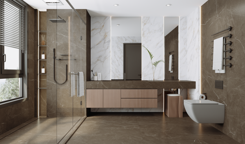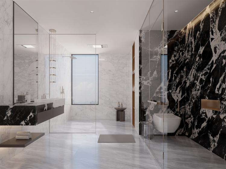 超感蝕刻工藝應用于大宅之中,再現石材天然紋理與色彩,營造自然詩意之美,同時有效提升瓷磚防滑性能與耐磨性,使大宅每一個角落都更加安全、舒適與耐用,讓每一位居住者都能在此自在悠然,感受生活的美好。