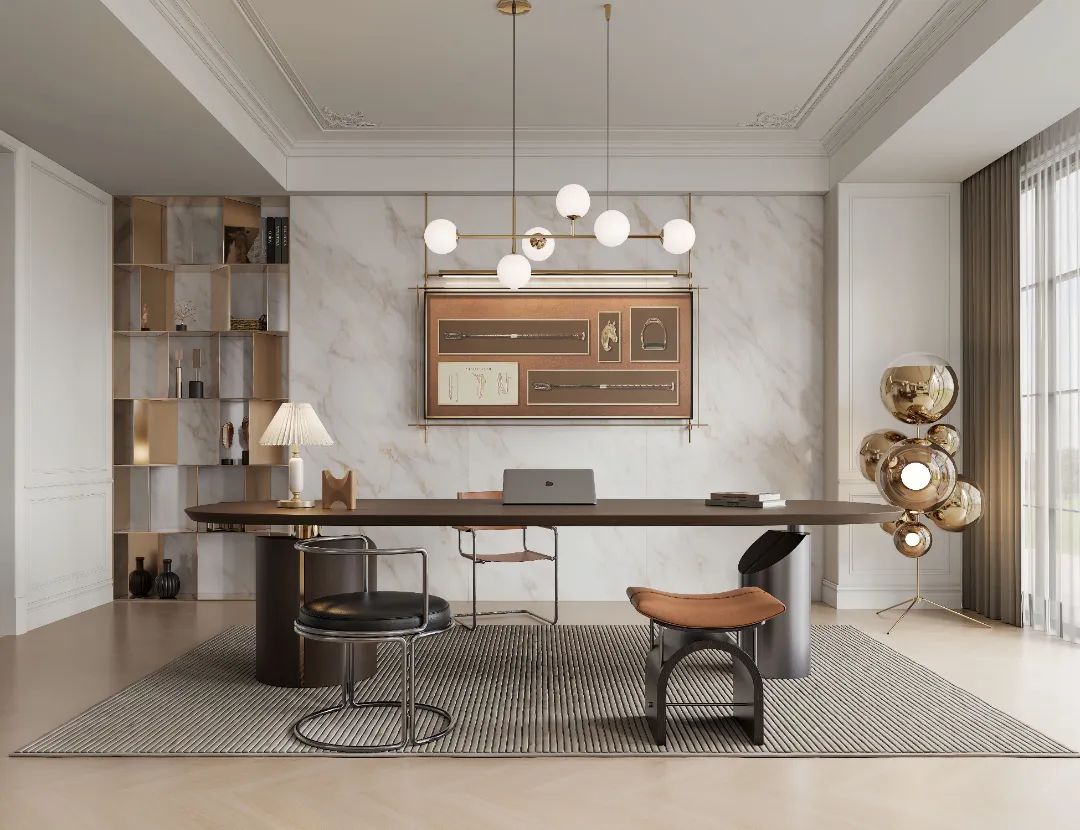 書房是都市人的精神庇護(hù)所,閱讀、冥想在此間發(fā)生。啞光質(zhì)感的木紋磚低調(diào)不張揚(yáng),賦予空間舒適柔雅的書香氣。迪奧金的奢石肌理與木質(zhì)元素微妙交織,搭配藝術(shù)感裝置,讓居者在時(shí)尚雅致的空間氛圍中,伴著書香抵達(dá)詩和遠(yuǎn)方,豐盈自我。