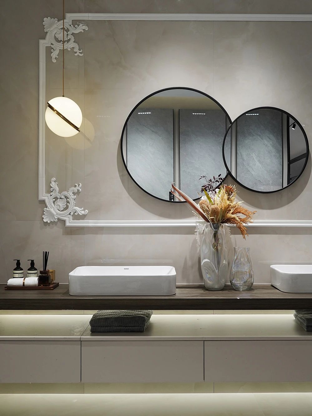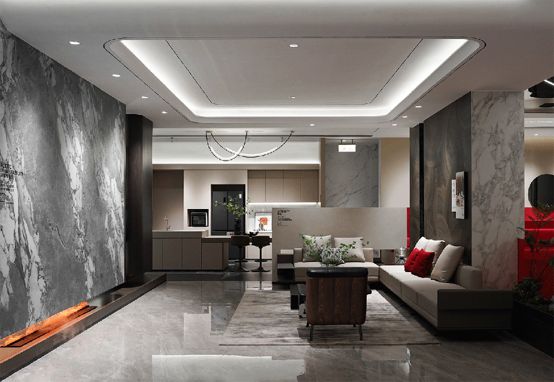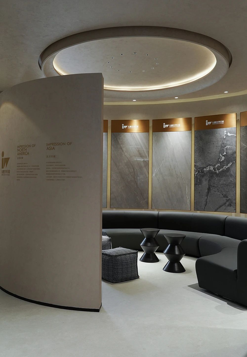 黑色系產品經由巧妙搭配,亦能構筑出層次鮮明、豐富多元的空間設計。衛浴空間延續奶油肌理的主調,無需過多雕琢,在時間的痕跡中,自然添上斑斕色彩與歡聲笑語。新中式會客廳,茶香裊裊,談笑聲聲,悠然享受午后靜好時光。展廳功能模塊,如設計師區、洽談區、活動會銷區,和選材區進行聯合,空間動線流暢簡潔,層次豐富多元。
