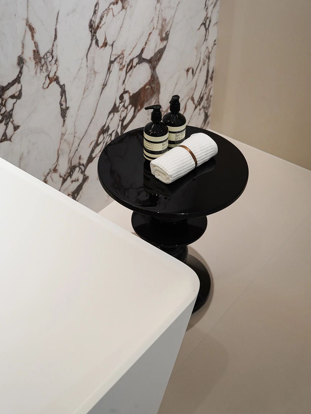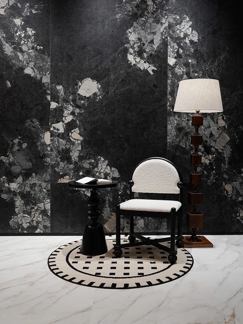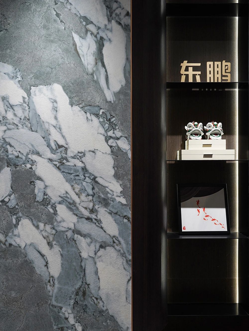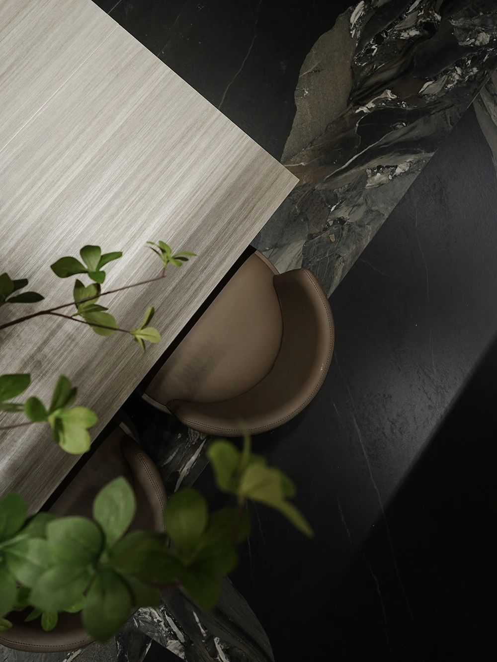 大理石地面宛若深邃潭水,與細膩木紋相得益彰,于時光流轉間,添上一抹溫柔與雅致。