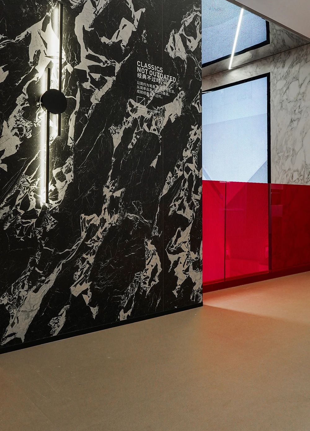 步入中山門店,可見墻地一體連紋迪奧金絲滑柔和白金肌底在日光中浮動,更顯明亮貴氣。拾級而上,步移景換,空間溫雅而明凈,精致之中蘊含質感,流露格調與品味。