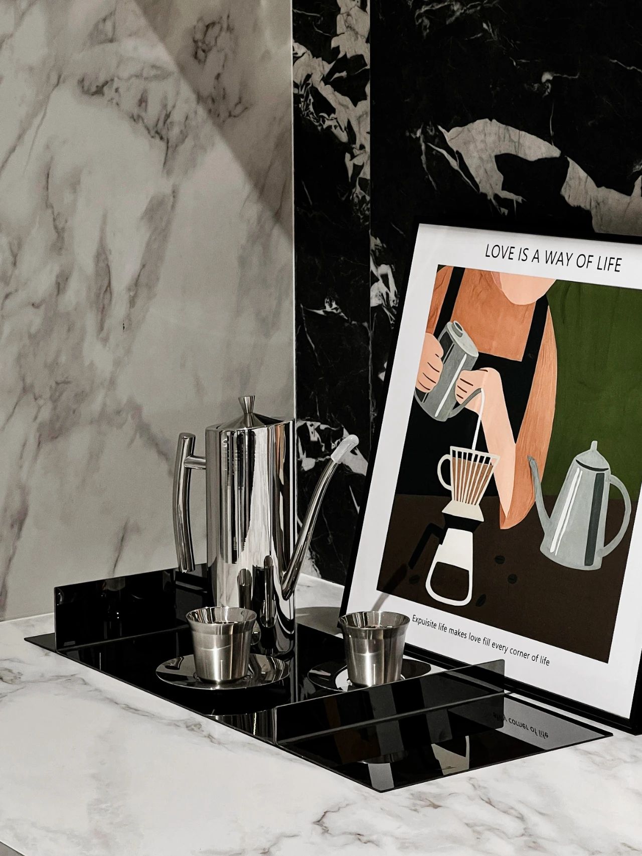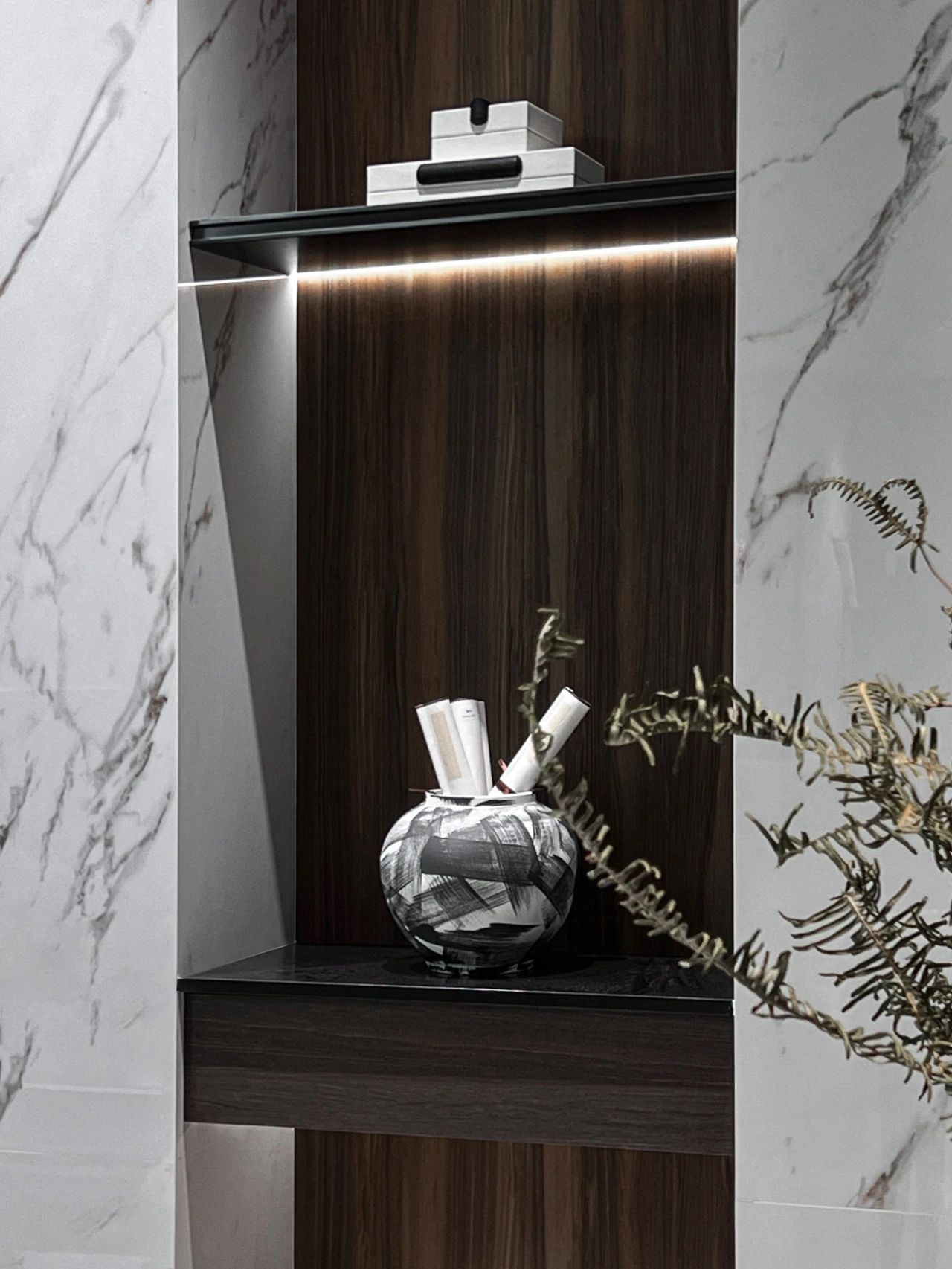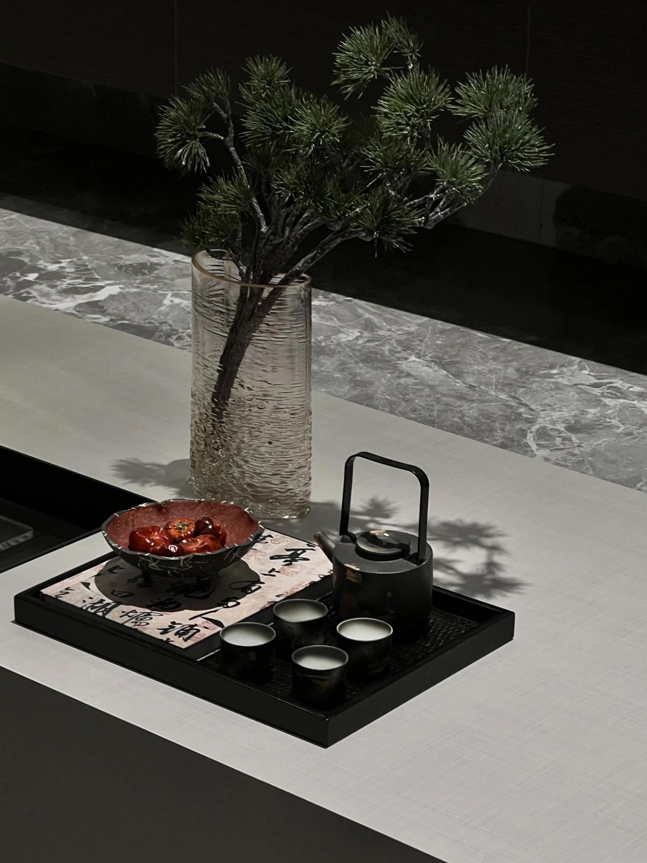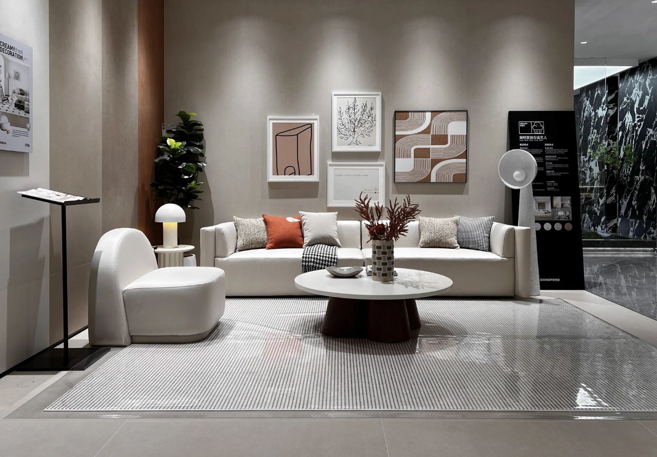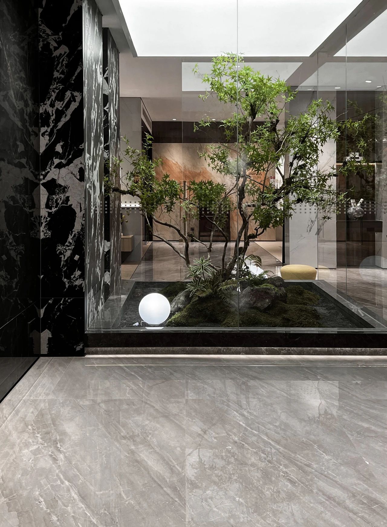 項目地址 | 江蘇省連云港市海州區興隆裝飾城建材3號館連云港,黃海之濱的璀璨明珠,山海相依,云霧繚繞,訴說著千古風華。踏入店內,克制而精妙的設計巧思,賦予空間以純凈無瑕的美感。經由設計師之手,整個空間呈現出一種清朗而雅致的干凈氛圍。觀設計巧妙融合室內外空間,遵循自然法則,巧妙利用光影與建筑的互動,為空間注入靈動的生命力,石材、植被等天然的材質巧妙運用,渲染出空間自然美感而形成的獨特氣韻,素雅且閑靜、舒緩而柔和。在中國文化中,家是心靈的港灣,承載著放松與休憩的溫馨。木質家居增添濃郁暖意,柔和燈光烘托出家的溫馨氛圍,使中式設計的家具更顯典雅獨特。水吧設計采用沉穩色調,巧妙融合木紋與小牛皮,觸目所及皆為品質巖板,全方位打造巖質家居風情。黑白色調為主的客餐廚設計,通過穿插、疊加、碰撞,勾畫物體之間的比例關系,展現空間別樣生命力。將輕松舒適融入居家,盡享純粹生活之樂。當代青年對愜意棲居有著獨到追求:向往自由不羈的生活方式,秉持隨性自在的態度,并以簡約有力的語言展現。采用柔和且中性的材質與色調,著重強化空間的場域氛圍,讓產品和諧融入,共同營造出一個整體氣氛融洽的居家環境。空間與時間相互交織,各種材料以其獨特的感性物質參與了一場流暢婉轉的協奏。
