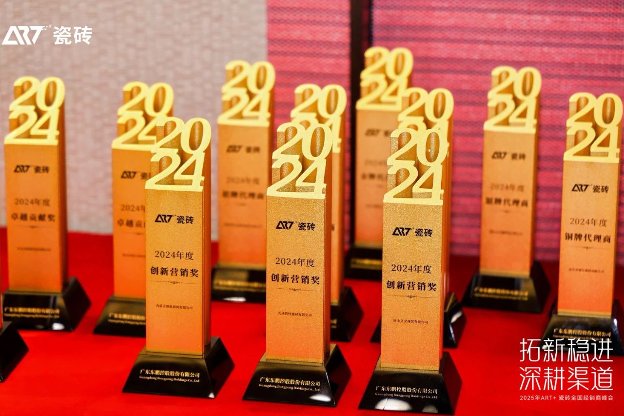 2025年1月9日,“拓新穩進 深耕渠道”2025年ART+瓷磚全國經銷商峰會在東鵬總部盛大召開,攜手全國經銷商齊聚一堂,共商發展大計,為 ART + 瓷磚在 2025 年及未來的發展奠定了堅實基礎。峰會伊始,東鵬瓷磚營銷中心總助兼零售市場中心負責人胡曲帶來了《ART+品牌定位規劃》分享,從高端藝術家居市場趨勢分析入手,深入洞察消費者需求。胡曲介紹,ART+將推出全新產品線和SI展廳,以滿足市場對高品質藝術瓷磚的需求。同時,總部將在2025年投入大量資源,支持品牌快速發展。他強調,只有不斷創新,才能在激烈的市場競爭中立于不敗之地,ART+將始終保持對市場的敏銳洞察,持續推動品牌升級。產品是市場的敲門磚與品牌核心競爭力。東鵬瓷磚高端品牌設計負責人李中全揭曉了《ART+2025產品年度規劃》。從世界藝術歷史的脈絡出發,ART+構建了全新的產品架構。李中全詳細介紹了產品的系列命名、材質工藝賣點,并發布了“藝無止境·寶藏計劃”。開發新品的過程就像尋找寶藏的過程,ART+將不斷探索藝術的邊界,為消費者帶來更多驚喜。品牌營銷規劃是將產品藍圖變為現實的關鍵。ART+瓷磚營銷負責人曾志鋒,帶來了《ART+品牌營銷規劃》的分享,共同回顧了2024年ART+在業績、產品、品牌三方面的成績。曾志鋒指出,2025年ART+將通過產品升級、政策支持,聚焦設計師渠道,實現年度業績增長目標。他強調,深耕設計師渠道是把握項目核心流量入口的關鍵,ART+將與全國經銷商一起,共同迎接市場的挑戰與機遇。ART +瓷磚始終堅定支持經銷商伙伴。在新品訂貨會環節,ART + 瓷磚華北大區經理陳文華詳細解讀《ART+訂貨會政策》。他表示,今年ART+品牌將繼續大力支持經銷商伙伴,帶來一系列優惠政策、支持措施,助力大家在新的一年里業績攀升。在頒獎中,對“年度金銀銅牌代理商”、“年度卓越貢獻獎”、“年度創新營銷獎”和“年度品牌貢獻獎”等多個獎項進行頒發,以表彰過去一年表現卓越的經銷商,激勵大家在未來繼續奮進。