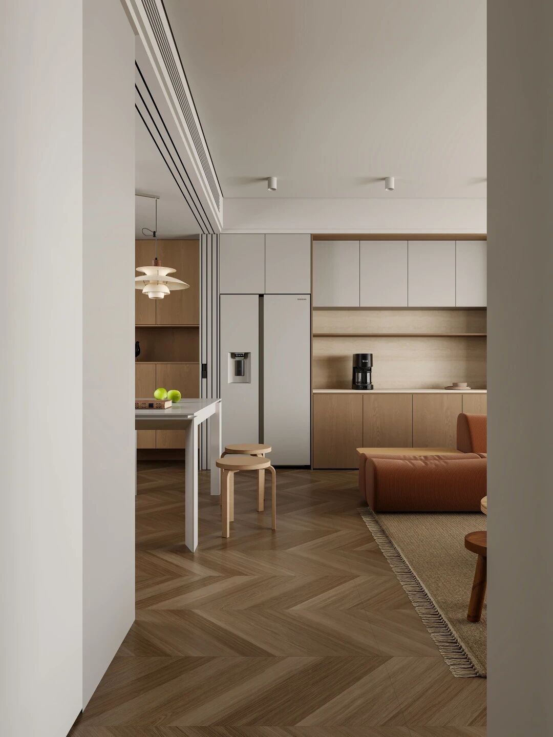 尚木系列-塞納幻橡(淺咖):復(fù)古木紋交錯流轉(zhuǎn),魚骨紋理律動靈動,勾勒出柔和卻富有層次的空間氣質(zhì),賦予生活場景更多松弛與想象力;