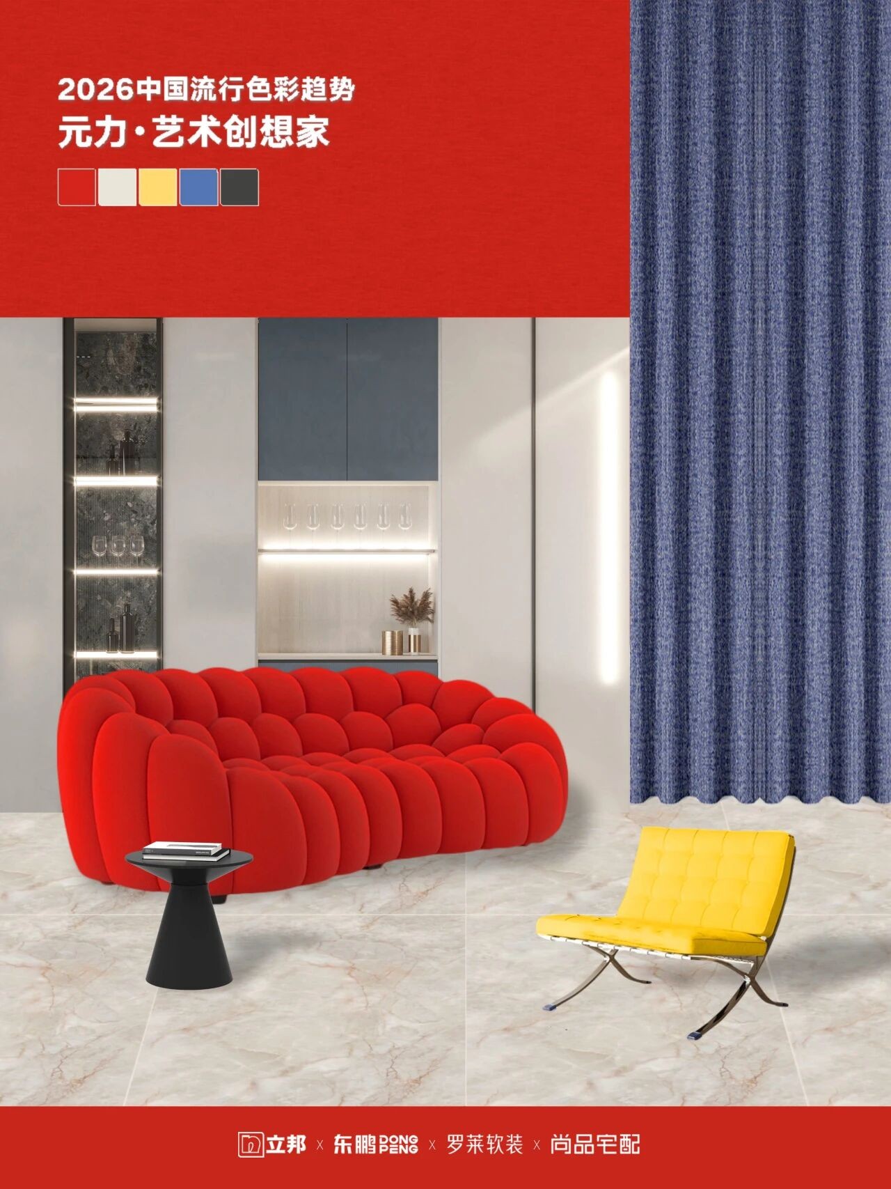 身為趨勢共創(chuàng)的重要參與者,東鵬始終以“空間基底構(gòu)建者”的身份參與其中,聚焦空間基底構(gòu)建,從色彩研發(fā)、材質(zhì)轉(zhuǎn)譯、產(chǎn)品矩陣到應(yīng)用場景的全鏈路打通,為“元力紅”在材質(zhì)層的真實(shí)表達(dá)提供支撐。與此同時,立邦依托全國超2萬臺調(diào)色機(jī)和CCM色彩管理體系,構(gòu)建科學(xué)的色彩趨勢預(yù)測模型,為“元力紅”色彩策略的形成與趨勢共識提供技術(shù)支持。軟裝維度上,羅萊軟裝與尚品宅配分別從軟裝與“全屋星級定制”角度,推動趨勢色融入生活動線,共同構(gòu)建從墻面到地面、從硬裝到軟裝的色彩協(xié)同體系。