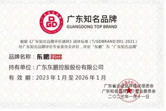 中國品牌 世界責任|東鵬榮獲“廣東知名品牌”稱號
