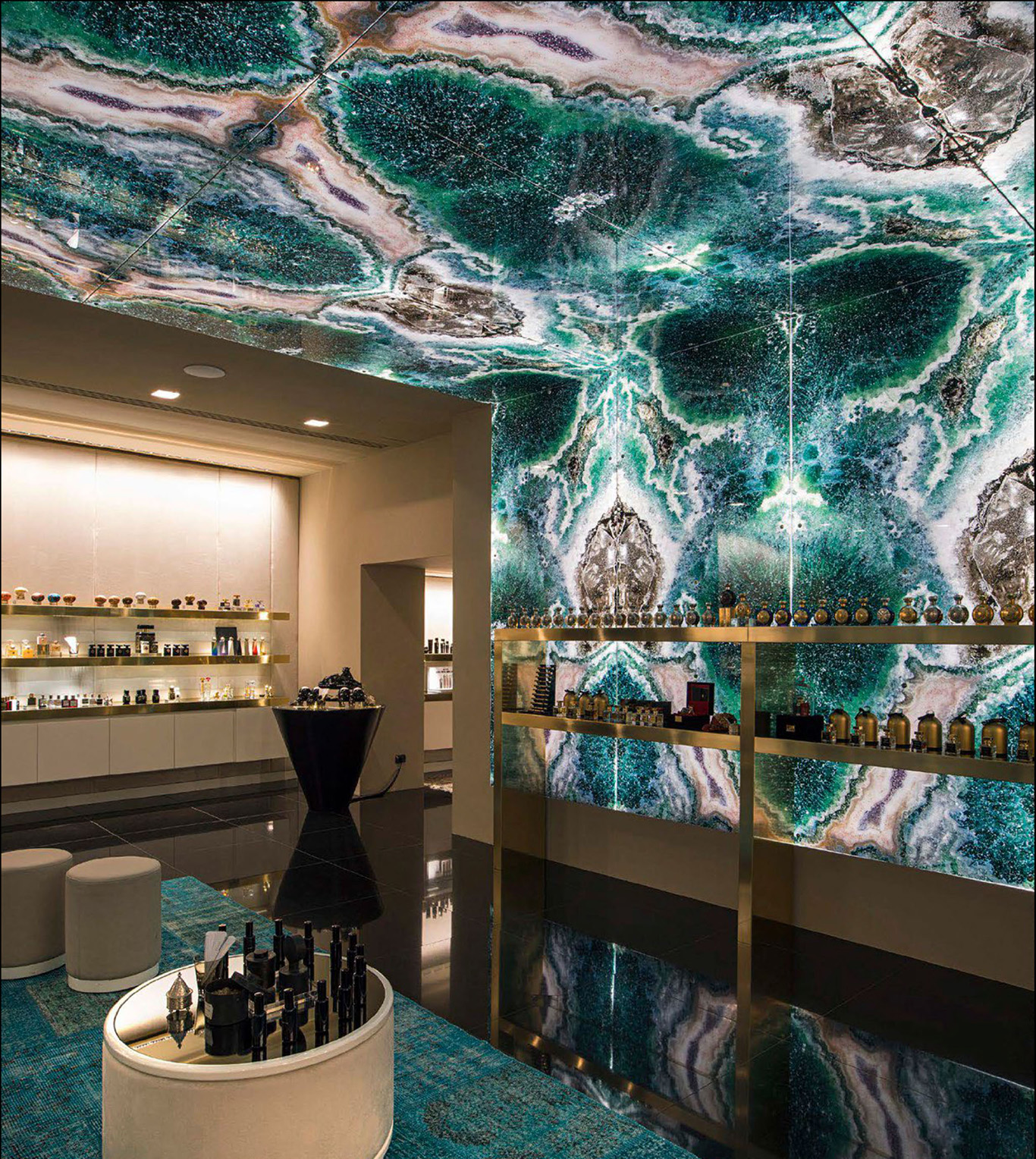 這款琉璃板材的紋理美如翡翠玉石切面,以對紋的方式拼接,背光的運用使其更加大氣柔和。每個細節都經過悉心雕琢,在空間運用中尤為精致舒適,適用于私人宅邸、商業空間、頂級酒店和地產項目。