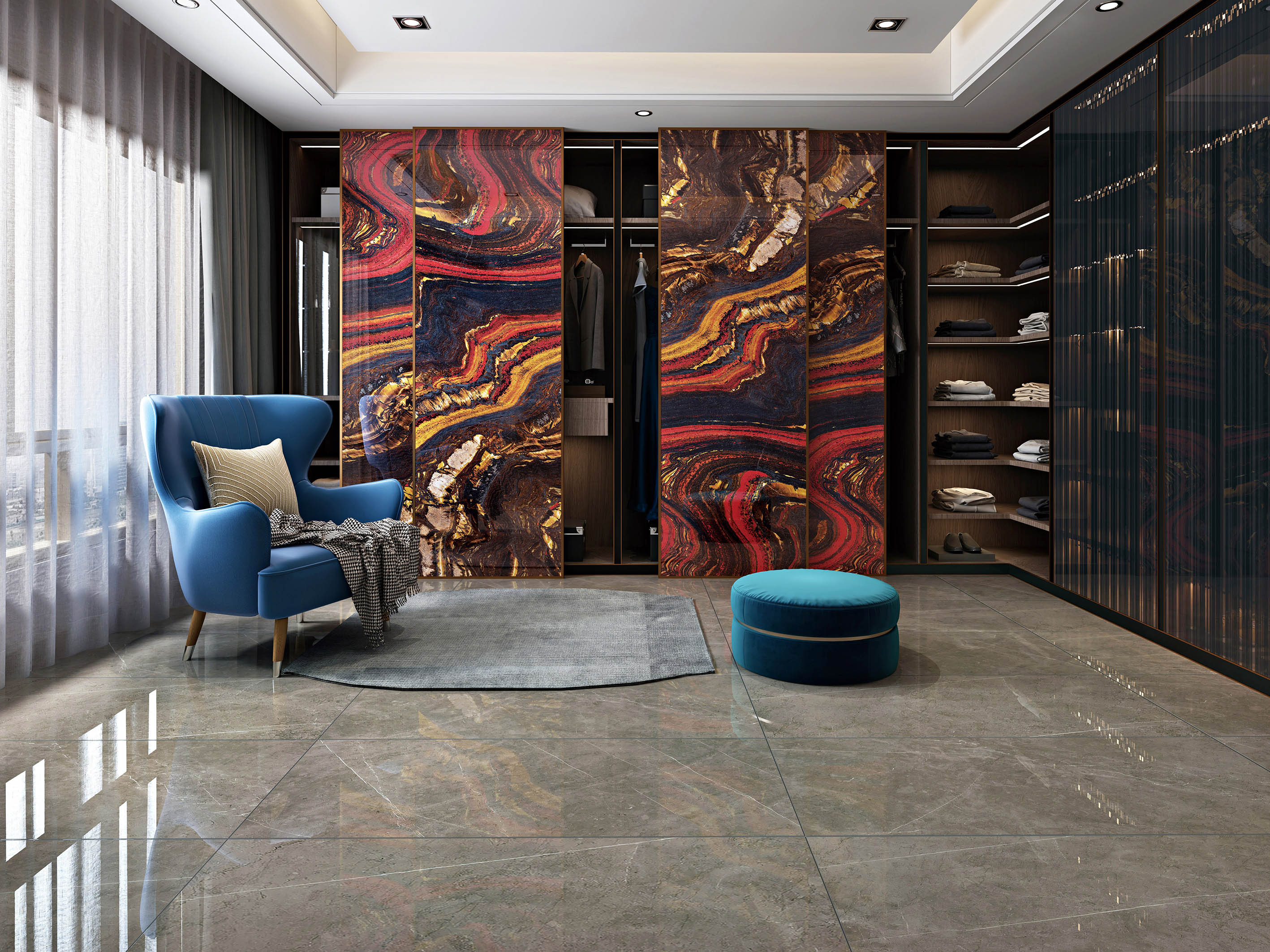 意大利SICIS琉璃大板新品—巖漿(Magma),設計靈感來源于火山爆發后流淌的滾燙巖漿,產品紋理狂野震撼,如火山爆發后流淌的巖漿,演繹了地球異域之美。